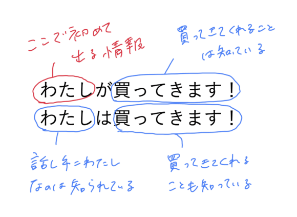 より伝えたいことが後ろにくるのが「は」、前にくるのが「が」