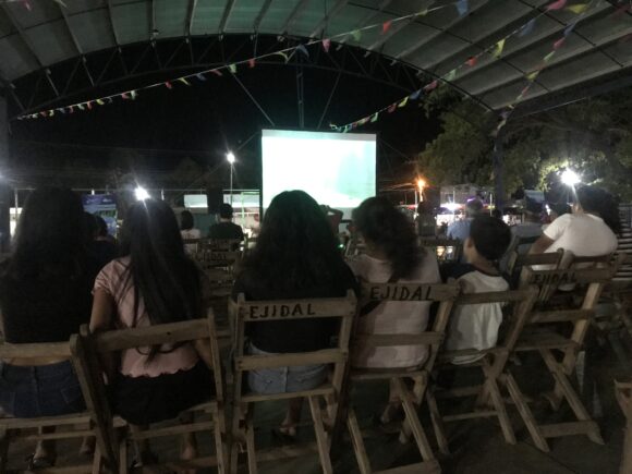 子どもたちが先程まで伝統的なダンスの練習をしていた場所で上映の準備がはじまった。ガイドのドン・ルイス、彼の叔父で出演者のひとりであるドン・ホアン、ドン・ホアンの同僚のドン・フロレンティーノ、手づくりのお土産をつくっている方、その方の姉妹、助産師でマッサージ師でもあるマルシアナ。改めてお礼を言いたかった人たちがみな集まってくれた。ご健在で嬉しい。