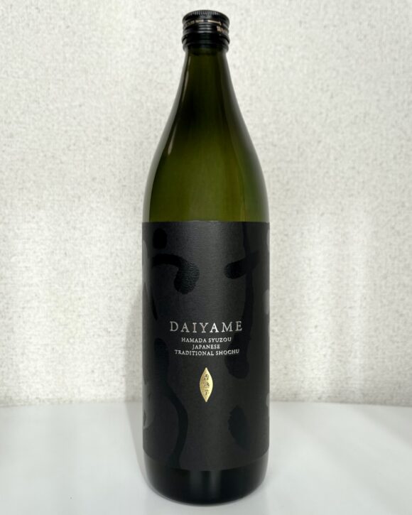 友人からおいしいと聞いたその焼酎は、鹿児島で創業一五〇年を超える濱田酒造が造った本格芋焼酎「だいやめ」。深い緑色のボトルに黒地のラベル。その中央には、箔押し加工が施されて銀色に輝く「DAIYAME」の文字。よく見ると、余白かと思っていた部分にはひらがなの「だいやめ」が大きく配置されています。暗闇のなかに溶け込みながら静かに主張するその四文字は、一見すると単なる模様のようにも見えます。